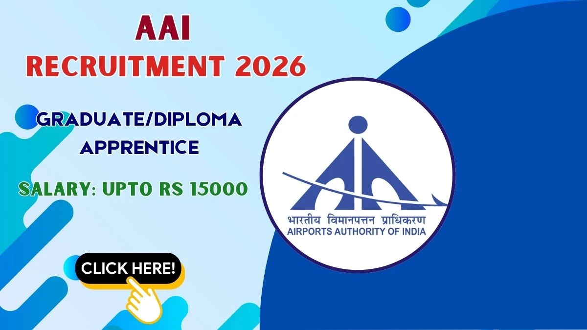 ఎయిర్పోర్ట్స్ అథారిటీ ఆఫ్ ఇండియా (AAI) 06 గ్రాడ్యుయేట్/డిప్లొమా అప్రెంటిస్ పోస్టుల భర్తీకి అధికారిక నోటిఫికేషన్ విడుదల చేసింది. ఆసక్తి మరియు అర్హత గల అభ్యర్థులు అధికారిక AAI వెబ్సైట్ ద్వారా ఆన్లైన్లో దరఖాస్తు చేసుకోవచ్చు. దరఖాస్తు ఫారమ్ను సమర్పించడానికి చివరి తేదీ 05-02-2026. ఈ కథనంలో, మీరు AAI గ్రాడ్యుయేట్/డిప్లొమా అప్రెంటీస్ పోస్ట్ల రిక్రూట్మెంట్ వివరాలను, అర్హత ప్రమాణాలు, వయో పరిమితి, జీతం నిర్మాణం, ఎంపిక ప్రక్రియ, దరఖాస్తు దశలు మరియు అధికారిక నోటిఫికేషన్ మరియు ఆన్లైన్ దరఖాస్తు ఫారమ్కి నేరుగా లింక్లను కనుగొంటారు.