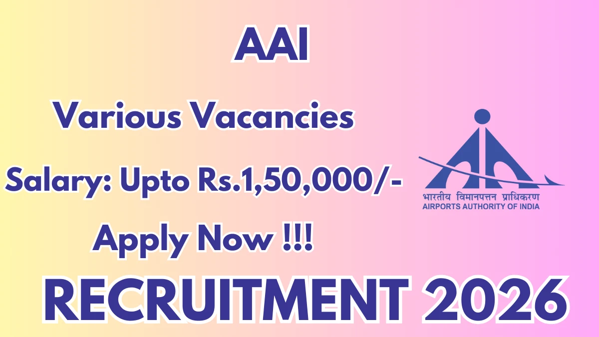 ఎయిర్‌పోర్ట్స్ అథారిటీ ఆఫ్ ఇండియా (AAI) 03 కన్సల్టెంట్, సీనియర్ కన్సల్టెంట్ మరియు మరిన్ని పోస్టుల భర్తీకి అధికారిక నోటిఫికేషన్‌ను విడుదల చేసింది. ఆసక్తి మరియు అర్హత గల అభ్యర్థులు అధికారిక AAI వెబ్‌సైట్ ద్వారా ఆన్‌లైన్‌లో దరఖాస్తు చేసుకోవచ్చు. దరఖాస్తు ఫారమ్‌ను సమర్పించడానికి చివరి తేదీ 08-02-2026. ఈ కథనంలో, మీరు AAI కన్సల్టెంట్, సీనియర్ కన్సల్టెంట్ మరియు మరిన్ని పోస్ట్‌ల రిక్రూట్‌మెంట్ వివరాలను, అర్హత ప్రమాణాలు, వయోపరిమితి, జీతం నిర్మాణం, ఎంపిక ప్రక్రియ, దరఖాస్తు దశలు మరియు అధికారిక నోటిఫికేషన్ మరియు ఆన్‌లైన్ దరఖాస్తు ఫారమ్‌కు ప్రత్యక్ష లింక్‌లను కనుగొంటారు.