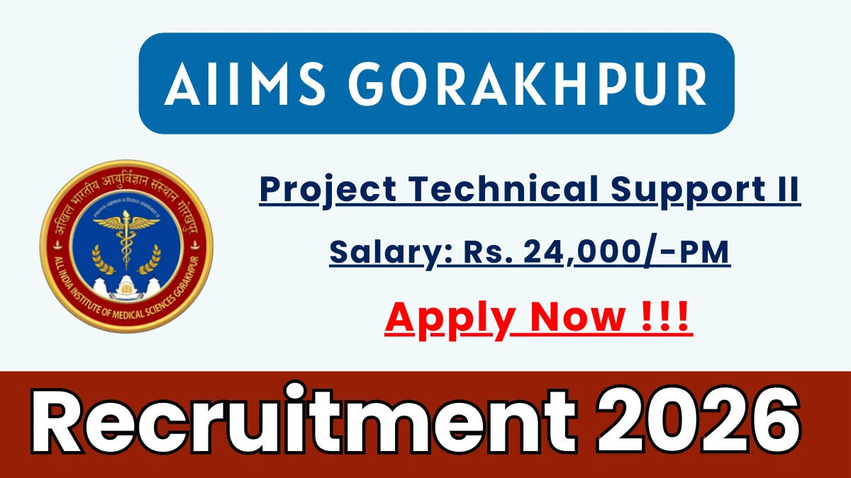 ఆల్ ఇండియా ఇన్స్టిట్యూట్ ఆఫ్ మెడికల్ సైన్సెస్, గోరఖ్‌పూర్ (AIIMS గోరఖ్‌పూర్) 1 ప్రాజెక్ట్ టెక్నికల్ సపోర్ట్-II పోస్టుల కోసం వాక్-ఇన్ ఇంటర్వ్యూ కోసం అధికారిక నోటిఫికేషన్‌ను విడుదల చేసింది. అర్హత గల అభ్యర్థులు 10-03-2026న AIIMS గోరఖ్‌పూర్ కార్యాలయంలో జరిగే వాక్-ఇన్ ఇంటర్వ్యూకు అసలు పత్రాలు మరియు స్వీయ-ధృవీకరించబడిన కాపీలతో హాజరుకావచ్చు.