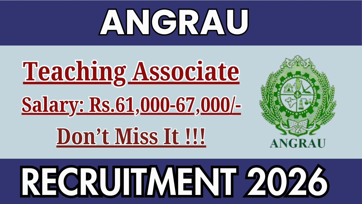 ఆచార్య NG రంగా అగ్రికల్చరల్ యూనివర్సిటీ (ANGRAU) రిక్రూట్మెంట్ 2026 01 టీచింగ్ అసోసియేట్ పోస్టుల కోసం. M.Sc, M.Phil/Ph.D ఉన్న అభ్యర్థులు వాకిన్కు హాజరుకావచ్చు. 17-02-2026న వాక్-ఇన్. వివరణాత్మక సమాచారం కోసం దయచేసి ANGRAU అధికారిక వెబ్సైట్, angrau.ac.inని సందర్శించండి.