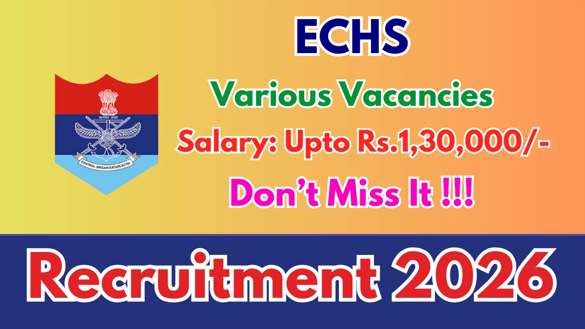 ఎక్స్ సర్వీస్మెన్ కాంట్రిబ్యూటరీ హెల్త్ స్కీమ్ (ECHS) 60 DEO, క్లర్క్ మరియు మరిన్ని పోస్టుల భర్తీకి అధికారిక నోటిఫికేషన్ను విడుదల చేసింది. ఆసక్తి మరియు అర్హత గల అభ్యర్థులు అధికారిక ECHS వెబ్సైట్ ద్వారా ఆఫ్లైన్లో దరఖాస్తు చేసుకోవచ్చు. దరఖాస్తు ఫారమ్ను సమర్పించడానికి చివరి తేదీ 23-02-2026. ఈ కథనంలో, మీరు ECHS DEO, క్లర్క్ మరియు మరిన్ని పోస్ట్ల రిక్రూట్మెంట్ వివరాలను, అర్హత ప్రమాణాలు, వయోపరిమితి, జీతం నిర్మాణం, ఎంపిక ప్రక్రియ, దరఖాస్తు దశలు మరియు అధికారిక నోటిఫికేషన్ మరియు ఆఫ్లైన్ దరఖాస్తు ఫారమ్కి నేరుగా లింక్లను కనుగొంటారు.