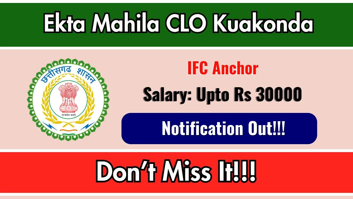 ఏక్తా మహిళా క్లస్టర్ లెవల్ ఆర్గనైజేషన్ (ఏక్తా మహిళా CLO కౌకొండ) 01 IFC యాంకర్ పోస్టుల భర్తీకి అధికారిక నోటిఫికేషన్ను విడుదల చేసింది. ఆసక్తి మరియు అర్హత గల అభ్యర్థులు అధికారిక ఏక్తా మహిళా CLO క్వాకొండ వెబ్సైట్ ద్వారా ఆఫ్లైన్లో దరఖాస్తు చేసుకోవచ్చు. దరఖాస్తు ఫారమ్ను సమర్పించడానికి చివరి తేదీ 12-02-2026. ఈ కథనంలో, మీరు ఏక్తా మహిళా CLO కౌకొండ IFC యాంకర్ పోస్ట్ల నియామక వివరాలను, అర్హత ప్రమాణాలు, వయోపరిమితి, జీతం నిర్మాణం, ఎంపిక ప్రక్రియ, దరఖాస్తు దశలు మరియు అధికారిక నోటిఫికేషన్ మరియు ఆఫ్లైన్ దరఖాస్తు ఫారమ్కు ప్రత్యక్ష లింక్లతో సహా కనుగొంటారు.