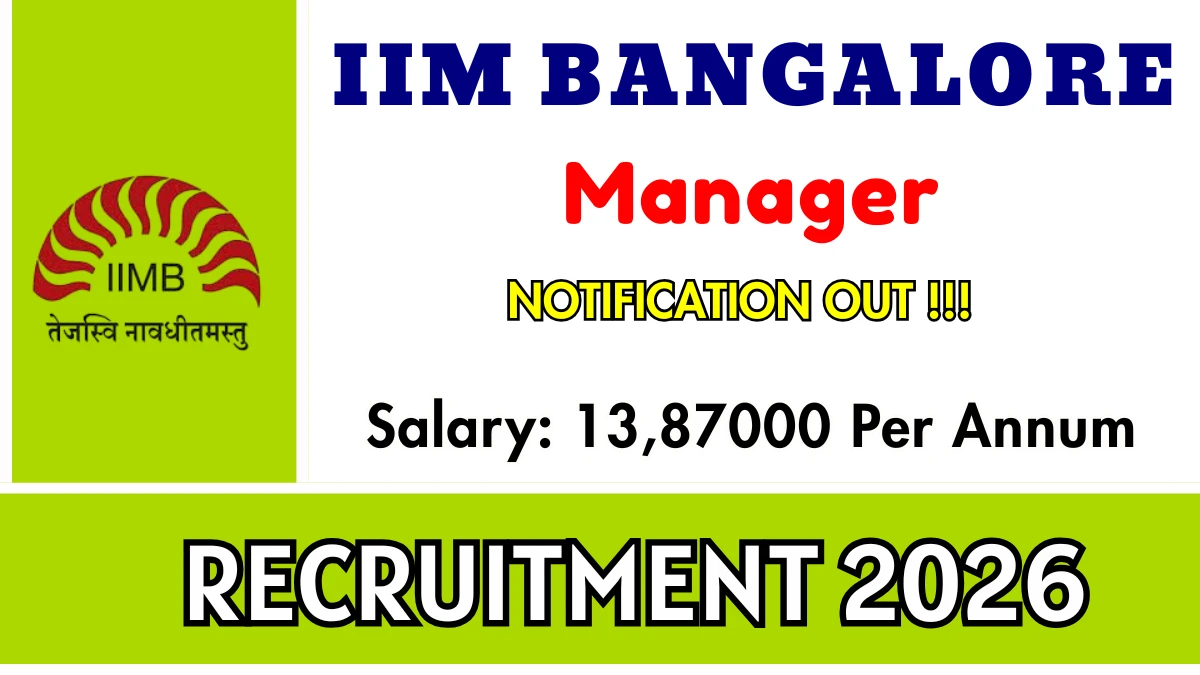 ఇండియన్ ఇన్స్టిట్యూట్ ఆఫ్ మేనేజ్మెంట్ బెంగళూరు (IIM బెంగళూరు) రిక్రూట్మెంట్ మేనేజర్ పోస్టుల కోసం అధికారిక నోటిఫికేషన్ను విడుదల చేసింది. ఆసక్తి మరియు అర్హత గల అభ్యర్థులు అధికారిక IIM బెంగళూరు వెబ్సైట్ ద్వారా ఆన్లైన్లో దరఖాస్తు చేసుకోవచ్చు. దరఖాస్తు ఫారమ్ను సమర్పించడానికి చివరి తేదీ 28-01-2026. ఈ కథనంలో, మీరు IIM బెంగళూరు మేనేజర్ పోస్ట్ల నియామక వివరాలను, అర్హత ప్రమాణాలు, వయోపరిమితి, జీతం నిర్మాణం, ఎంపిక ప్రక్రియ, దరఖాస్తు దశలు మరియు అధికారిక నోటిఫికేషన్ మరియు ఆన్లైన్ దరఖాస్తు ఫారమ్కు ప్రత్యక్ష లింక్లతో సహా కనుగొంటారు.