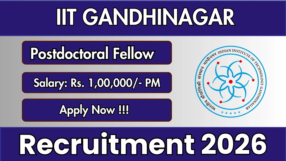 ఇండియన్ ఇన్స్టిట్యూట్ ఆఫ్ టెక్నాలజీ గాంధీనగర్ (ఐఐటీ గాంధీనగర్) పోస్ట్డాక్టోరల్ ఫెలో పోస్టుల భర్తీకి అధికారిక నోటిఫికేషన్ విడుదల చేసింది. ఆసక్తి మరియు అర్హత గల అభ్యర్థులు అధికారిక IIT గాంధీనగర్ వెబ్సైట్ ద్వారా ఆన్లైన్లో దరఖాస్తు చేసుకోవచ్చు. దరఖాస్తు ఫారమ్ను సమర్పించడానికి చివరి తేదీ 28-02-2026. ఈ కథనంలో, మీరు IIT గాంధీనగర్ పోస్ట్డాక్టోరల్ ఫెలో పోస్ట్ల రిక్రూట్మెంట్ వివరాలను, అర్హత ప్రమాణాలు, వయోపరిమితి, జీతం నిర్మాణం, ఎంపిక ప్రక్రియ, దరఖాస్తు దశలు మరియు అధికారిక నోటిఫికేషన్ మరియు ఆన్లైన్ దరఖాస్తు ఫారమ్కు ప్రత్యక్ష లింక్లతో సహా కనుగొంటారు.