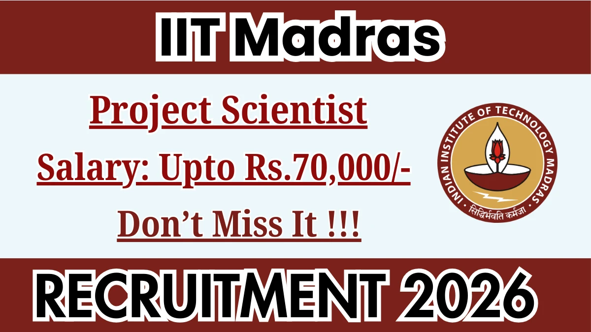 ఇండియన్ ఇన్స్టిట్యూట్ ఆఫ్ టెక్నాలజీ మద్రాస్ (IIT మద్రాస్) 01 ప్రాజెక్ట్ సైంటిస్ట్ పోస్టుల భర్తీకి అధికారిక నోటిఫికేషన్ విడుదల చేసింది. ఆసక్తి మరియు అర్హత గల అభ్యర్థులు అధికారిక IIT మద్రాస్ వెబ్సైట్ ద్వారా ఆన్లైన్లో దరఖాస్తు చేసుకోవచ్చు. దరఖాస్తు ఫారమ్ను సమర్పించడానికి చివరి తేదీ 02-02-2026. ఈ కథనంలో, మీరు IIT మద్రాస్ ప్రాజెక్ట్ సైంటిస్ట్ పోస్ట్ల రిక్రూట్మెంట్ వివరాలను, అర్హత ప్రమాణాలు, వయోపరిమితి, జీతం నిర్మాణం, ఎంపిక ప్రక్రియ, దరఖాస్తు దశలు మరియు అధికారిక నోటిఫికేషన్ మరియు ఆన్లైన్ దరఖాస్తు ఫారమ్కు ప్రత్యక్ష లింక్లను కనుగొంటారు.