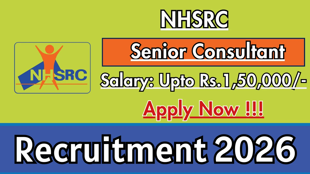 నేషనల్ హెల్త్ సిస్టమ్స్ రిసోర్స్ సెంటర్ (NHSRC) సీనియర్ కన్సల్టెంట్ పోస్టుల భర్తీకి అధికారిక నోటిఫికేషన్ విడుదల చేసింది. ఆసక్తి మరియు అర్హత గల అభ్యర్థులు అధికారిక NHSRC వెబ్‌సైట్ ద్వారా ఆన్‌లైన్‌లో దరఖాస్తు చేసుకోవచ్చు. దరఖాస్తు ఫారమ్‌ను సమర్పించడానికి చివరి తేదీ 24-02-2026. ఈ కథనంలో, మీరు NHSRC సీనియర్ కన్సల్టెంట్ పోస్ట్‌ల రిక్రూట్‌మెంట్ వివరాలను, అర్హత ప్రమాణాలు, వయోపరిమితి, జీతం నిర్మాణం, ఎంపిక ప్రక్రియ, దరఖాస్తు దశలు మరియు అధికారిక నోటిఫికేషన్ మరియు ఆన్‌లైన్ దరఖాస్తు ఫారమ్‌కు ప్రత్యక్ష లింక్‌లను కనుగొంటారు.