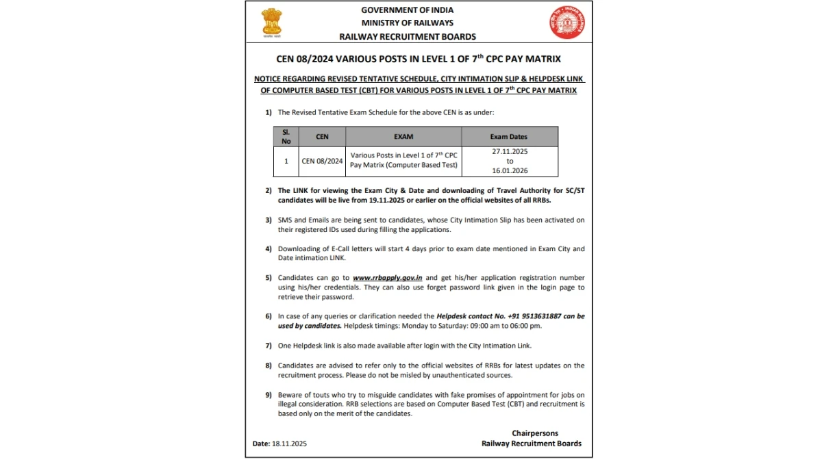 RRB పరీక్ష తేదీ 2025ని ఎక్కడ తనిఖీ చేయాలి?